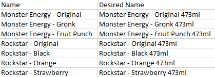 - For each product you want to change the name of, enter the new name into the Desired Name column.