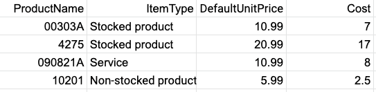 For example, if there’s already a product named 10201 with a unit price of $10 in the program, then following the example in the image above, the import will update item 10201 to use a unit price of $5.99.