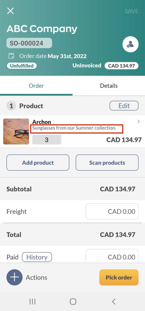 A key difference between Product name and SKU is that the SKUs will be in italics, and you can’t edit these from an order.