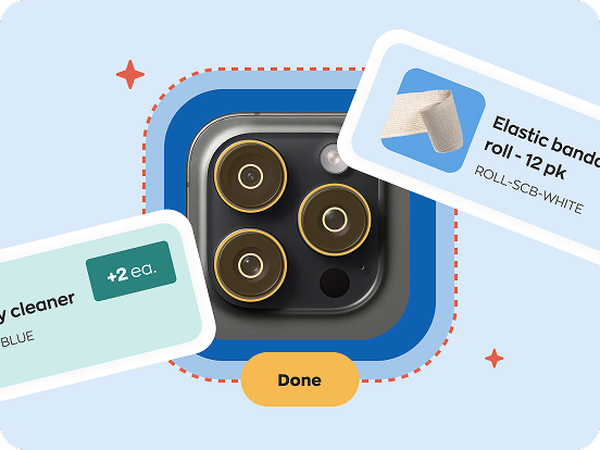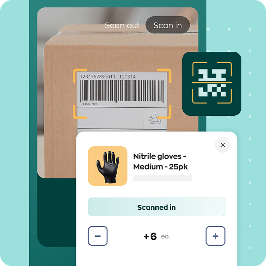 Stockroom saves time by replacing paper forms or stock cards with a fast scan-in and scan-out workflow.