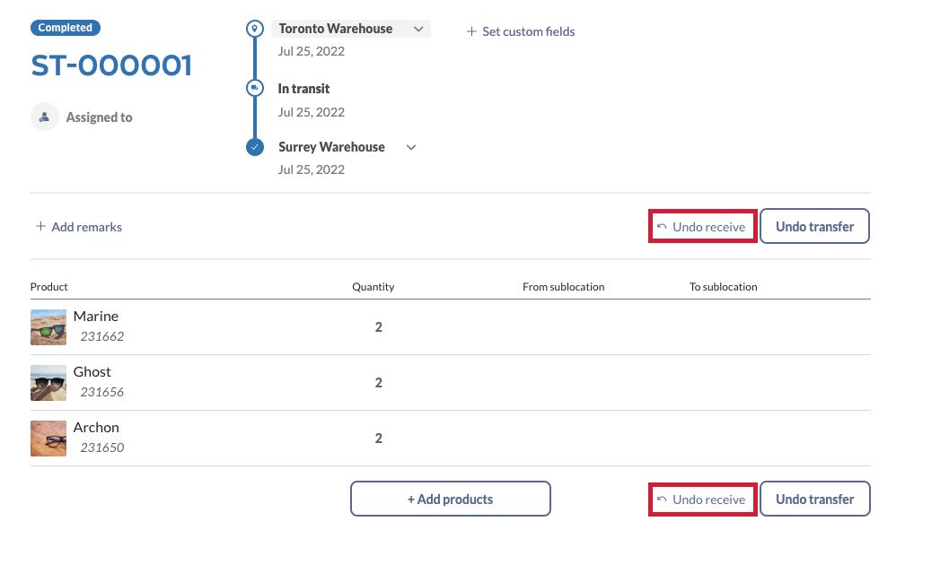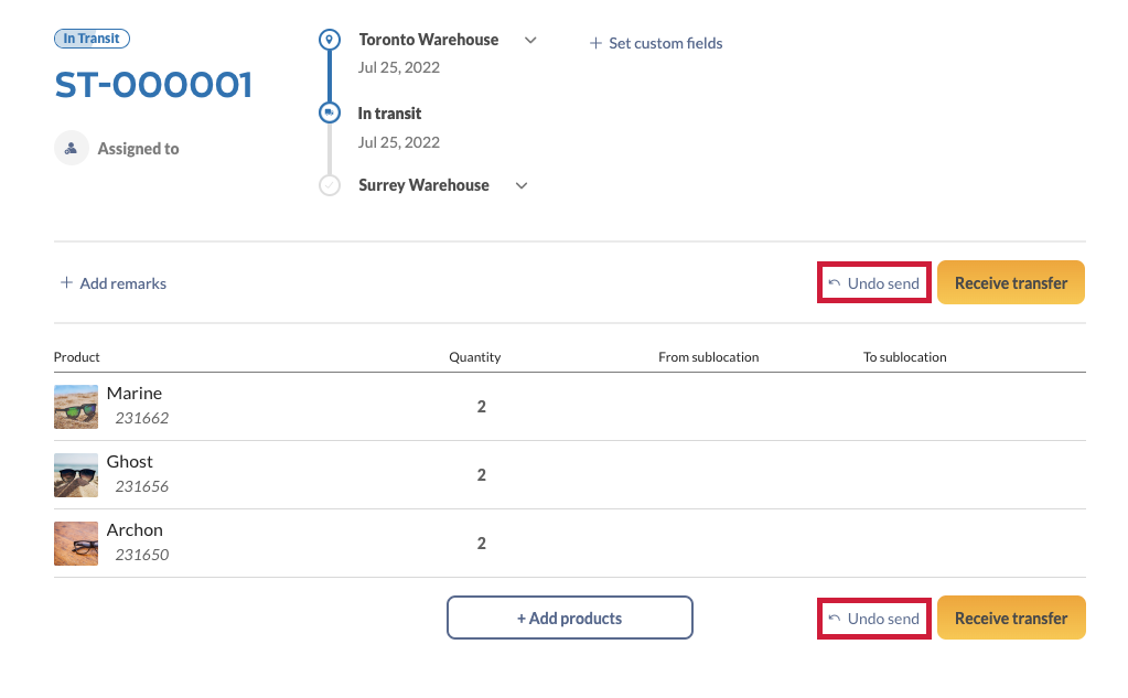 If you sent a stock transfer by mistake, you can undo the transfer to restore your product quantities.